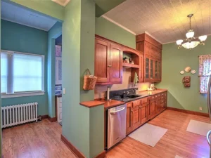 Also located on the first floor is a full bathroom and a dedicated laundry room—an uncommon but convenient feature in a historic home. Whether you’re hosting holiday gatherings or just enjoying a quiet evening at home, this floor plan accommodates it all with ease.