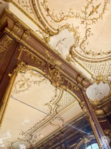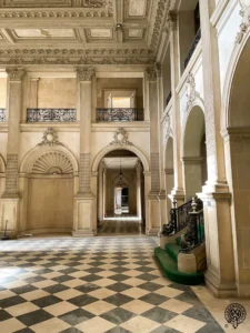 The exterior of the mansion features a limestone façade adorned with intricate carvings, columns, and balustrades, all of which contribute to the building’s majestic appearance.