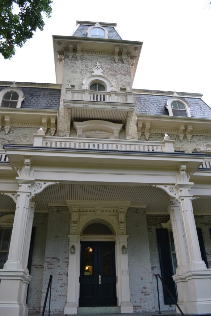 In the 1870s, the house took shape a grand, three-story brick mansion designed in the Second Empire style, popular during that era. With its ornate slate mansard roof, decorative brackets, and tall windows, the Gambrill House stood out as one of the most luxurious residences in the region.