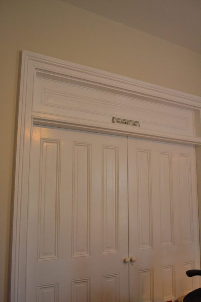 The large doors separating the owners’ suite. These doors appear to swing open, rather than slide as pocket doors.