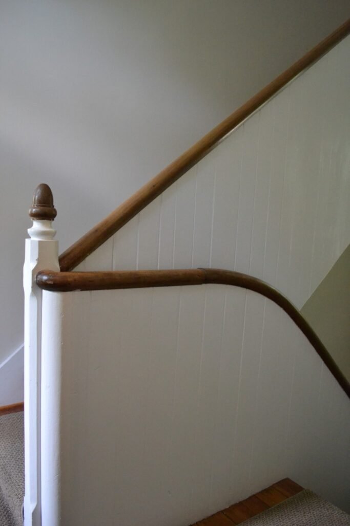 The solid wood newel post and ballisters.