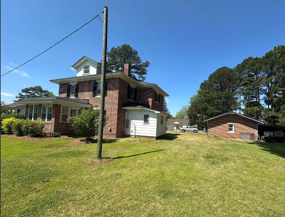 In the quiet, picturesque town of Severn, North Carolina, stands a home that seems to whisper stories from nearly a century ago. Built circa 1925, this 2,440-square-foot brick residence radiates charm, history, and potential from every angle. Resting on a generous .84-acre lot, it’s a classic Southern home that captures the architectural grace of the early 20th century — complete with a welcoming covered front porch, a graceful porte cochere, and hints of craftsmanship that have stood the test of time.