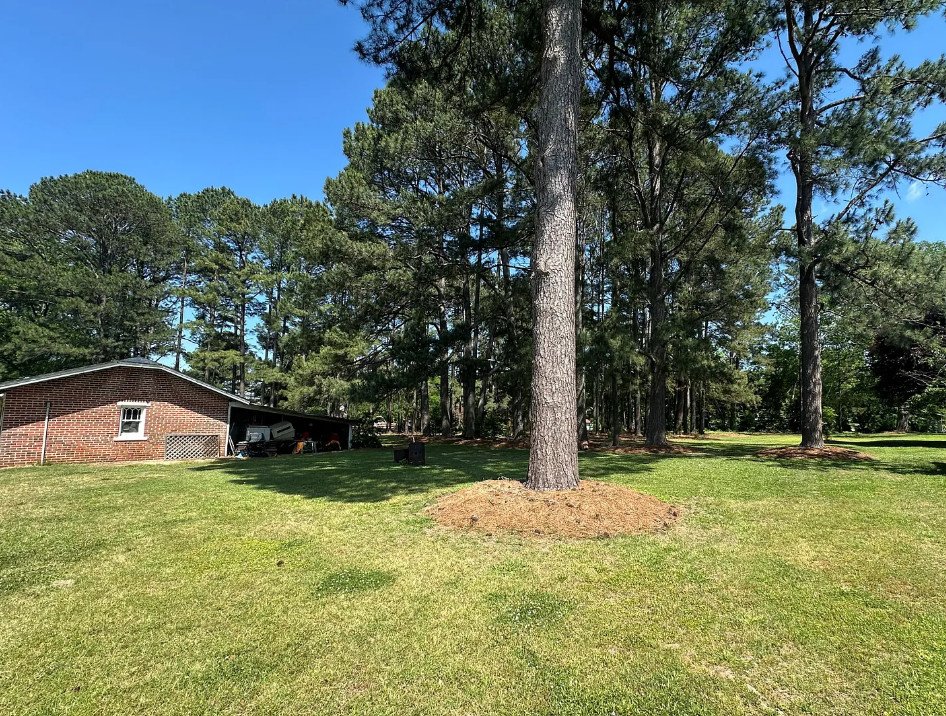 Beyond the main home, the property includes a detached garage and additional storage space, offering plenty of room for vehicles, tools, or future workshop projects. The large yard — nearly an acre — is surrounded by mature trees and open areas, creating a sense of peace and seclusion. There’s ample space for gardening, outdoor gatherings, or simply enjoying the beauty of the rural North Carolina landscape.