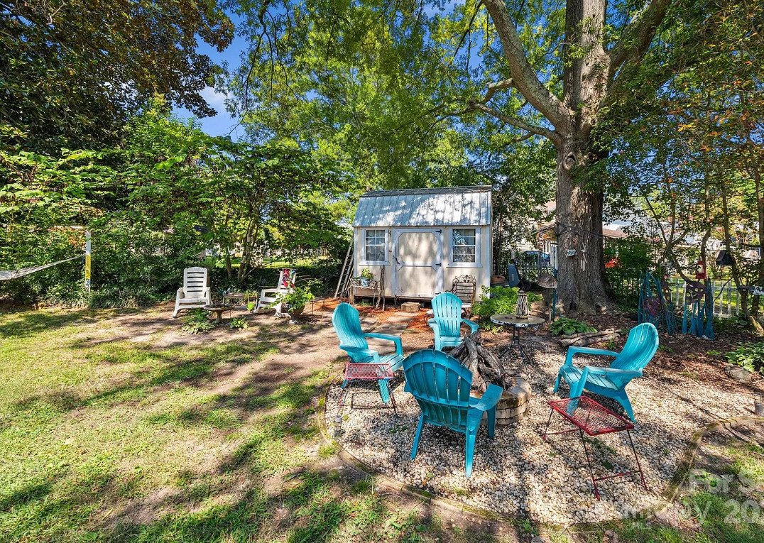 Outside, the property truly shines. Set on just under a third of an acre, the fenced backyard is private and beautifully landscaped. Mature trees, flowering shrubs, and lush greenery create a serene retreat right at home. A large patio provides plenty of space for outdoor dining or entertaining, while a built-in fire pit invites gatherings under the stars. Nearby, a charming fish pond with a fountain adds a soothing element to the garden, and a detached storage shed offers additional space for tools or hobbies.