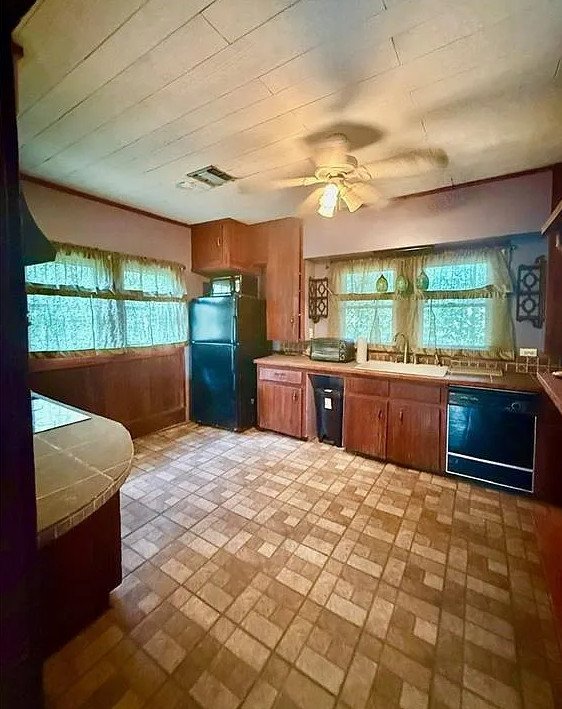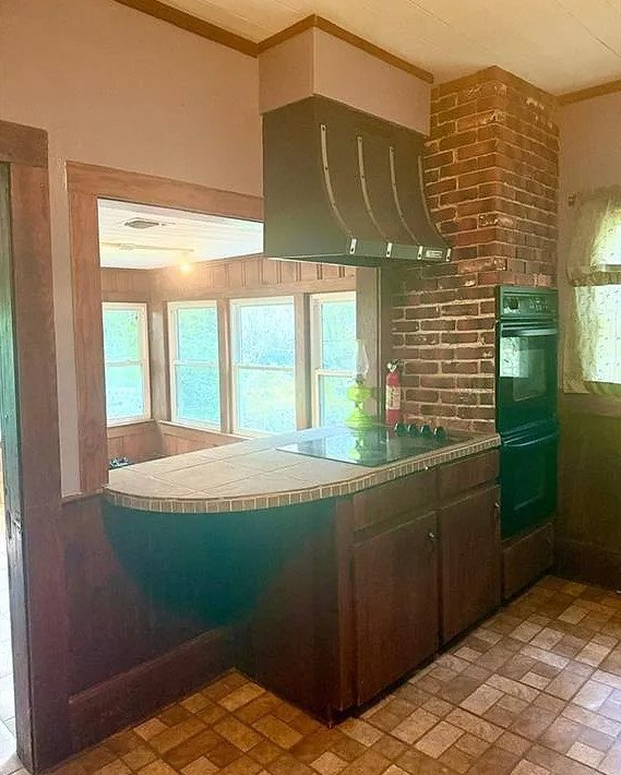 Fireplaces, including wood-burning options, anchor key rooms, providing both function and historical character. Their mantels remain beautifully preserved, adding depth and authenticity to the atmosphere. The spacious kitchen is another standout feature: simple, functional, and bright, offering generous room for daily routines or gatherings. Its size is an advantage rarely found in homes from this period, making it a centerpiece of the property in both practicality and charm.