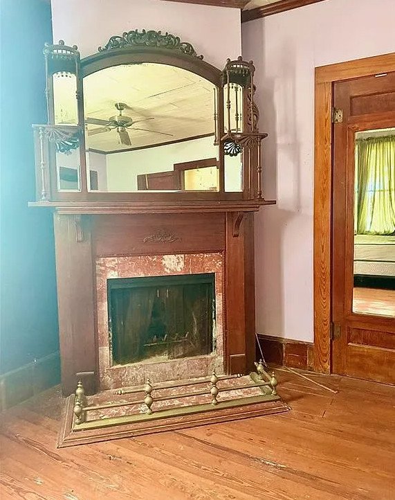 Wood floors stretch throughout the home, reflecting the warm tones and subtle imperfections that only time can create. These surfaces have been lived on, cared for, and preserved for nearly 140 years, and they help define the distinctive presence of the entire home. The wide baseboards and period mantels show the kind of bold, sturdy design common in the late nineteenth century, grounding each room with a sense of permanence and tradition.