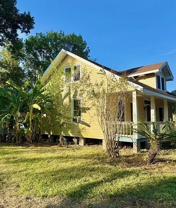 The moment you approach the property, you are greeted by a generous front porch stretching across the façade, the kind of space that invites long conversations, quiet mornings, and the simple joy of watching the sun settle over the surrounding landscape. Porches of this style were a hallmark of late nineteenth-century Louisiana homes, designed to create a comfortable transition between the indoors and the warm climate outside. Here, the porch remains an integral part of the home’s welcoming presence.