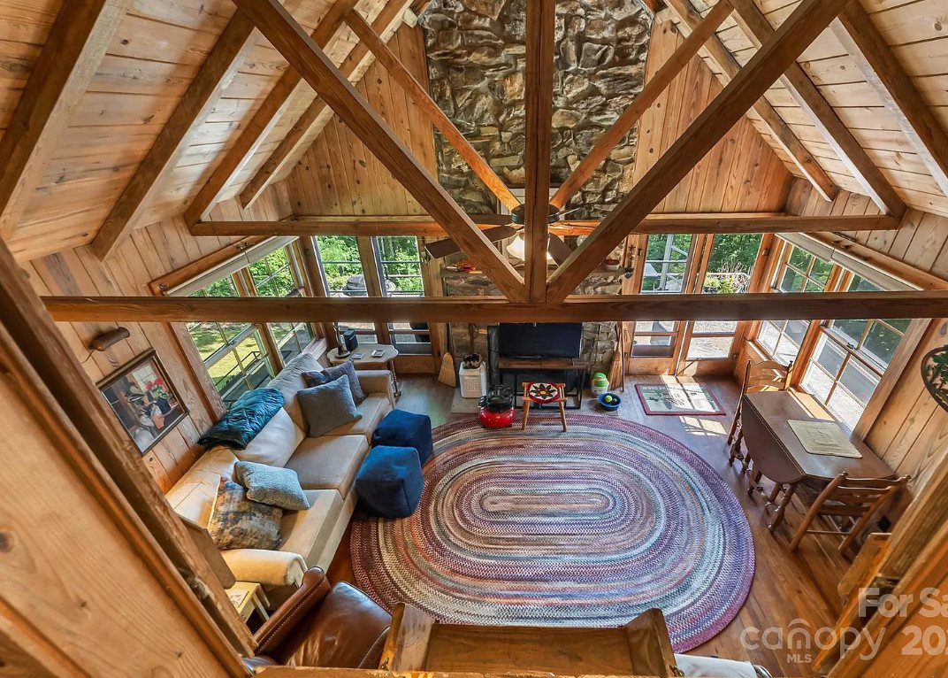 Tucked deep within the forests of Maggie Valley, North Carolina, sits a cabin that seems almost lifted from the pages of a storybook—a place where towering trees meet open skies, where crisp mountain air drifts across sweeping vistas, and where time slows enough for visitors to truly appreciate the beauty around them. Resting on nearly nine acres of land, this 1941 cabin is more than a cozy escape; it is a cherished piece of mountain history that has served as a beloved retreat for generations.