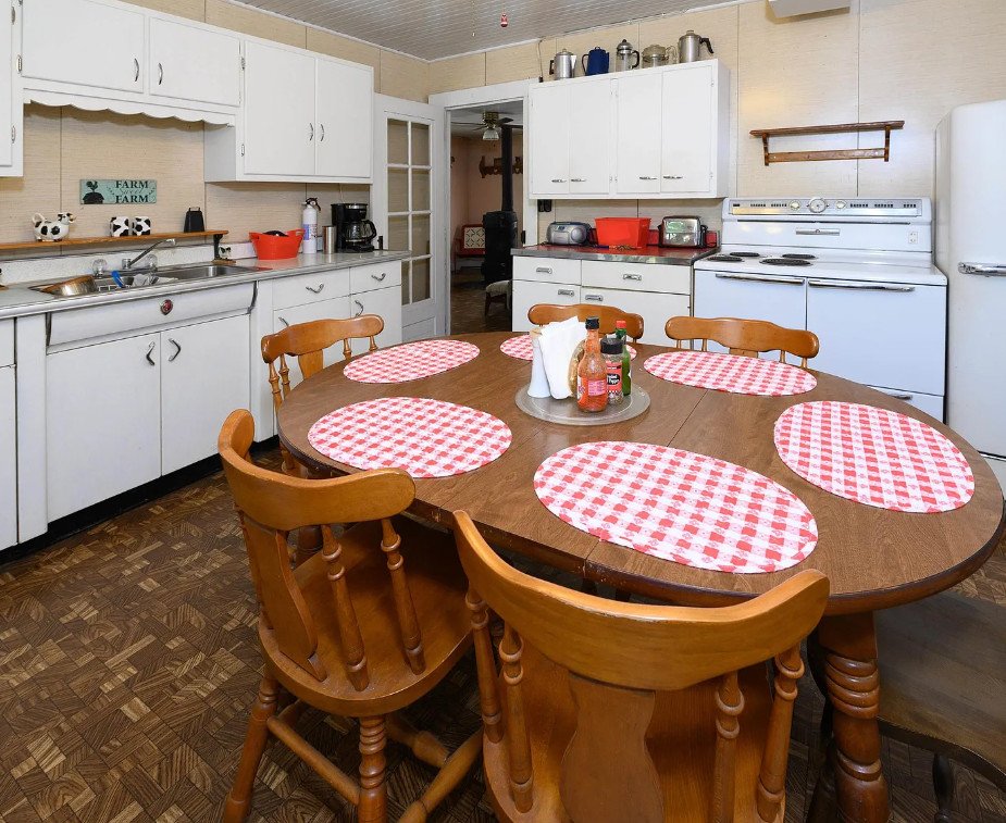 Inside, the home still retains elements of an earlier lifestyle, most notably a wood and coal stove—a reminder of the era before modern heating systems. Nearby sits a hand-dug well, still operational, that once supplied all the water needed for daily life. Beneath the house is a canning cellar, another relic of rural resourcefulness, where families stored jars of preserved vegetables, meats, and fruits through the colder months. Though simple, these features reflect a way of living closely tied to the rhythms of the land and the seasons.