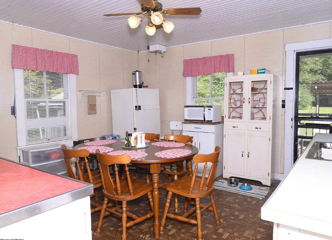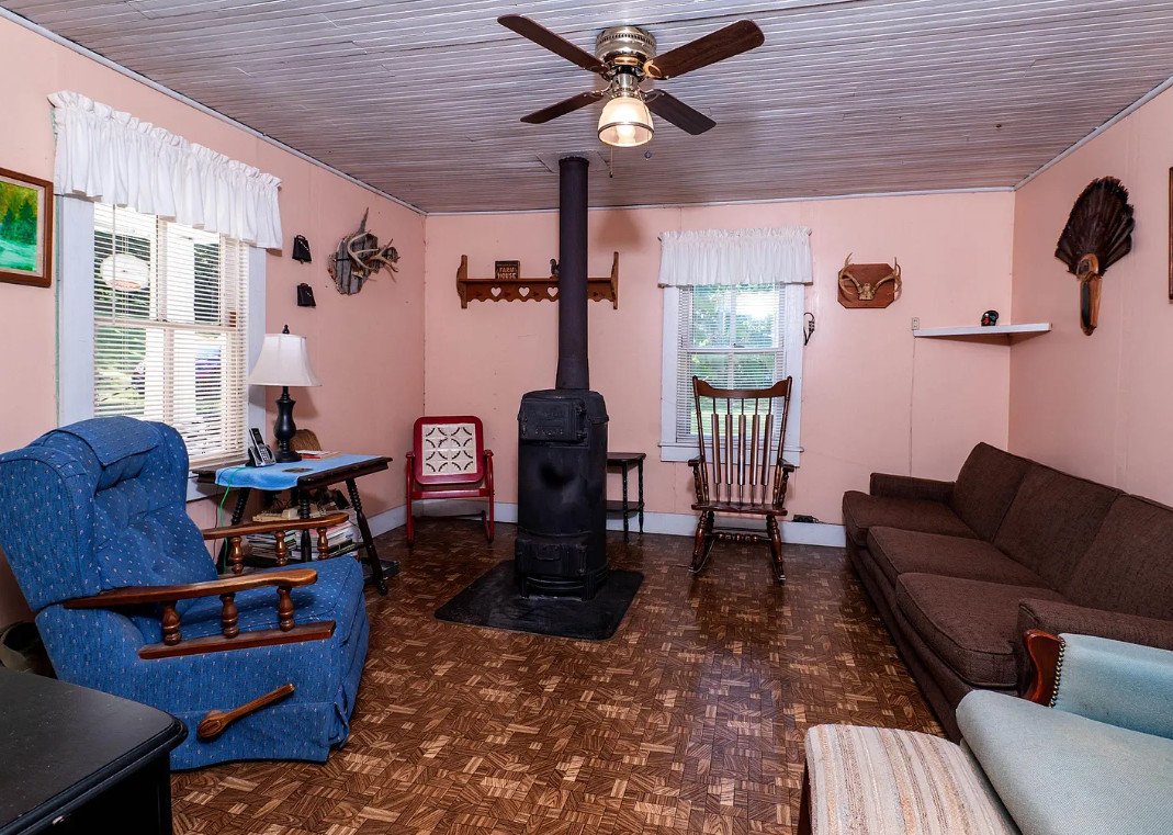 Inside, the home still retains elements of an earlier lifestyle, most notably a wood and coal stove—a reminder of the era before modern heating systems. Nearby sits a hand-dug well, still operational, that once supplied all the water needed for daily life. Beneath the house is a canning cellar, another relic of rural resourcefulness, where families stored jars of preserved vegetables, meats, and fruits through the colder months. Though simple, these features reflect a way of living closely tied to the rhythms of the land and the seasons.