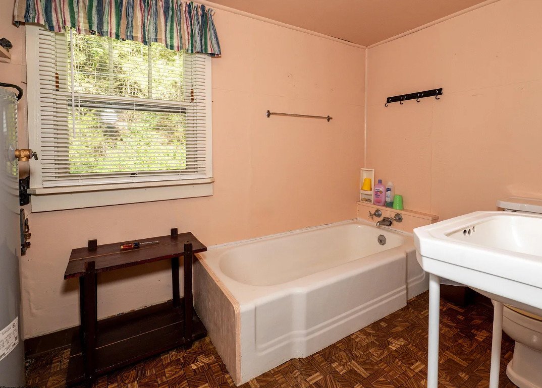 The farmhouse at the heart of the land is humble, sturdy, and reflective of rural living in the early 20th century. Constructed in 1925, it includes three bedrooms, two bathrooms, and about 1,081 square feet of interior space.