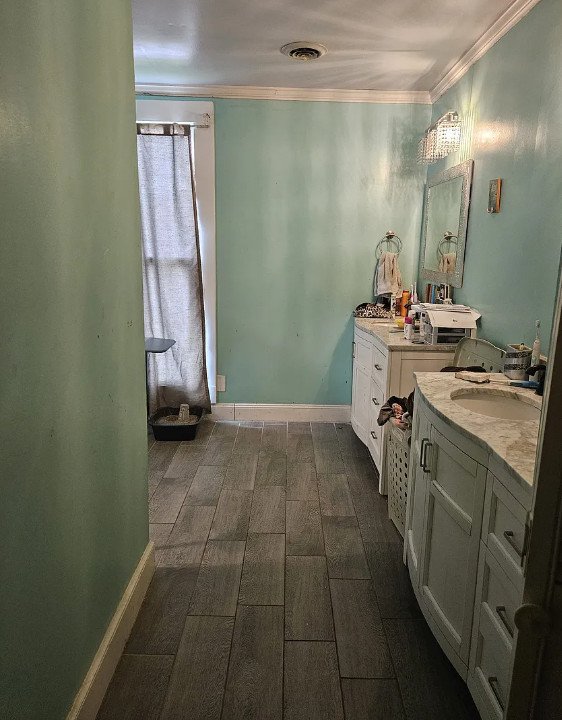 Crown moulding adds sophistication to several rooms, while the built-in bookshelves offer both practicality and character—perfect for displaying cherished collections or creating a quiet reading nook.