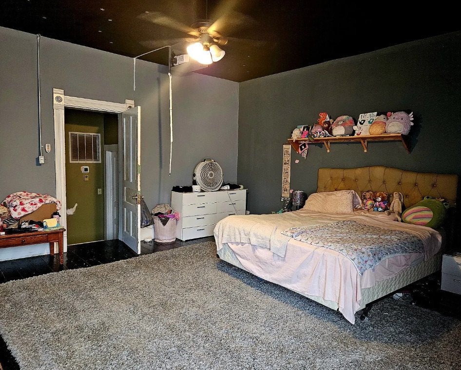 Original floors remain in the front parlor rooms, preserving the authenticity of the early 20th-century construction. These front rooms, with their wide trim and elegant proportions, serve as a beautiful reminder of the home’s heritage.