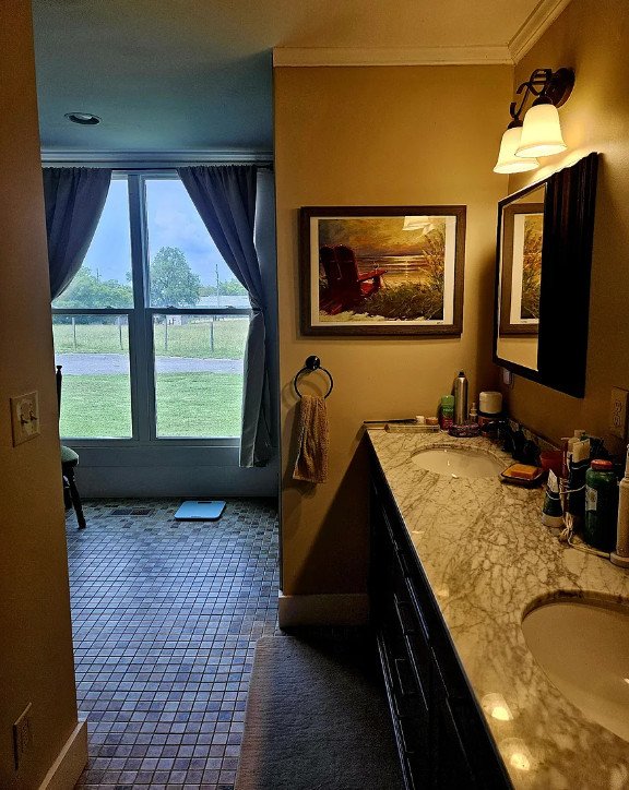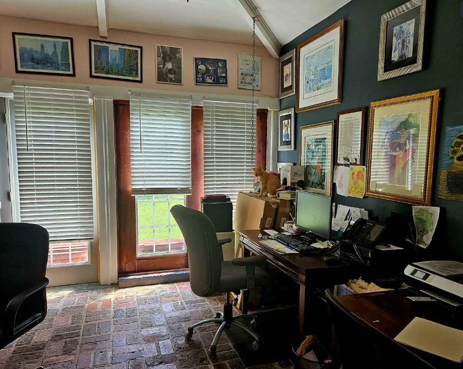 Additional living spaces include a sunroom and family room, both enhanced by brick pavers that add durability and rustic charm. These rooms feel inviting and comfortable, offering versatile areas for lounging, entertaining, or enjoying quiet afternoons bathed in natural light. High ceilings and thoughtful architectural details give each space its own personality, making the home feel expansive without losing its sense of warmth.