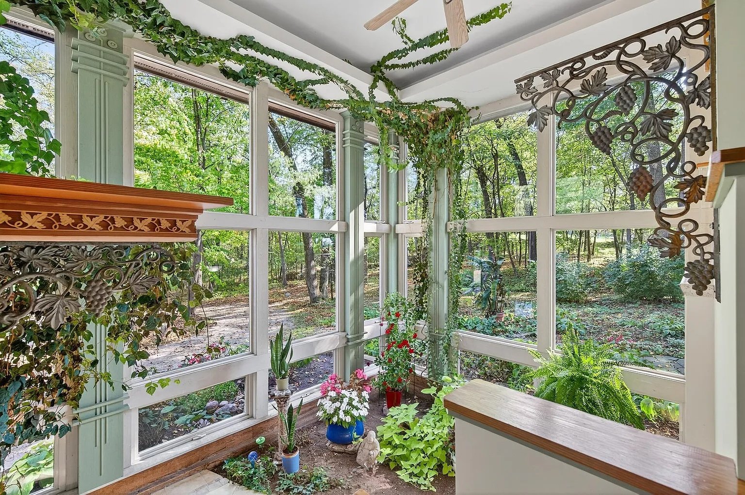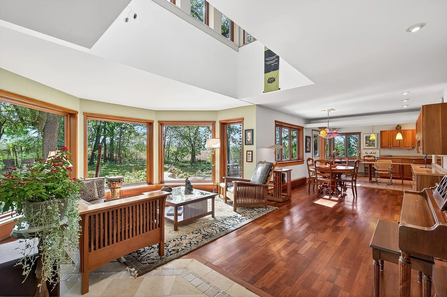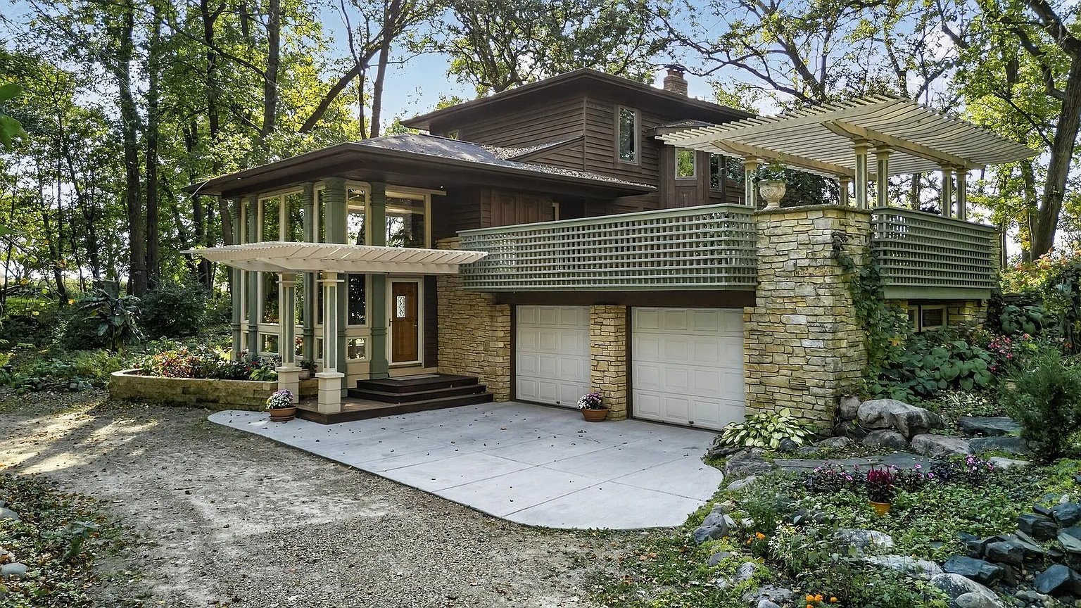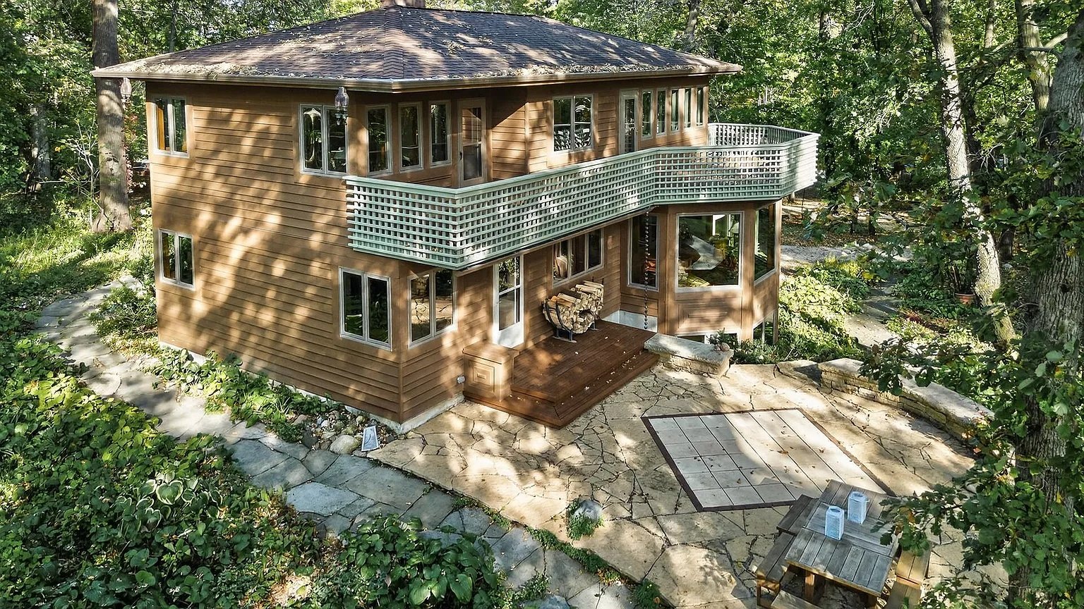 Resting on five private, tree-lined acres, the home offers a peaceful retreat for anyone who values privacy, craftsmanship, and a close connection to the outdoors—all while remaining within easy reach of the Twin Cities. Every aspect of the residence reflects creativity, harmony with nature, and an unmistakable sense of intention.