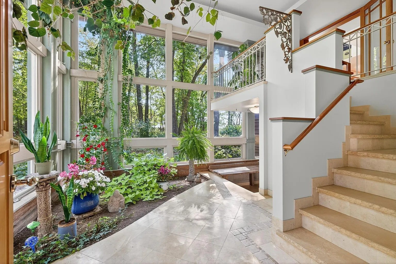 Stepping inside, the home continues to inspire. A bright, airy atrium welcomes you with cascading natural light, setting the tone for the uplifting atmosphere found throughout the interior. This sun-filled space serves as both a visual centerpiece and a gentle transition between indoors and outdoors.