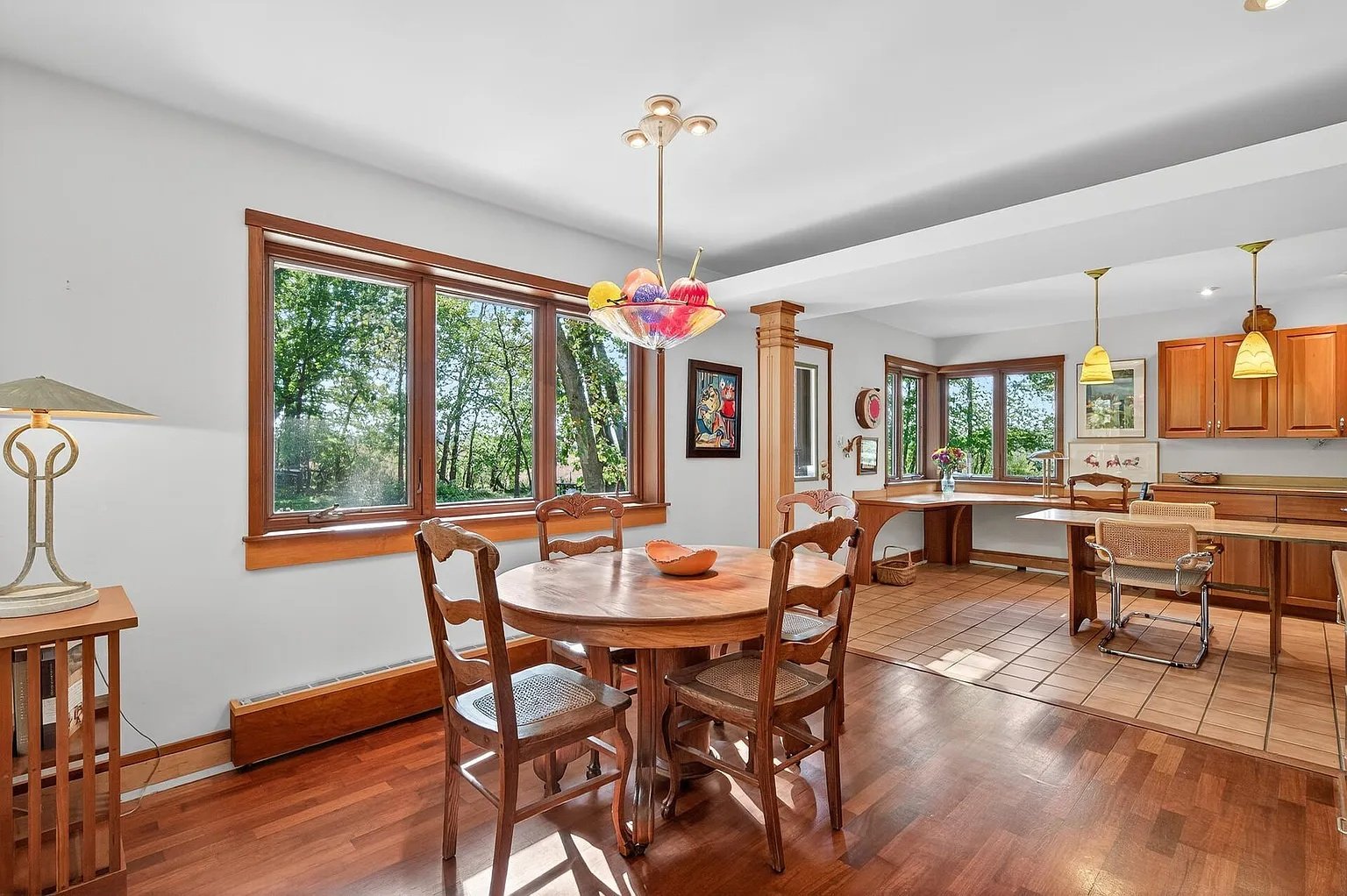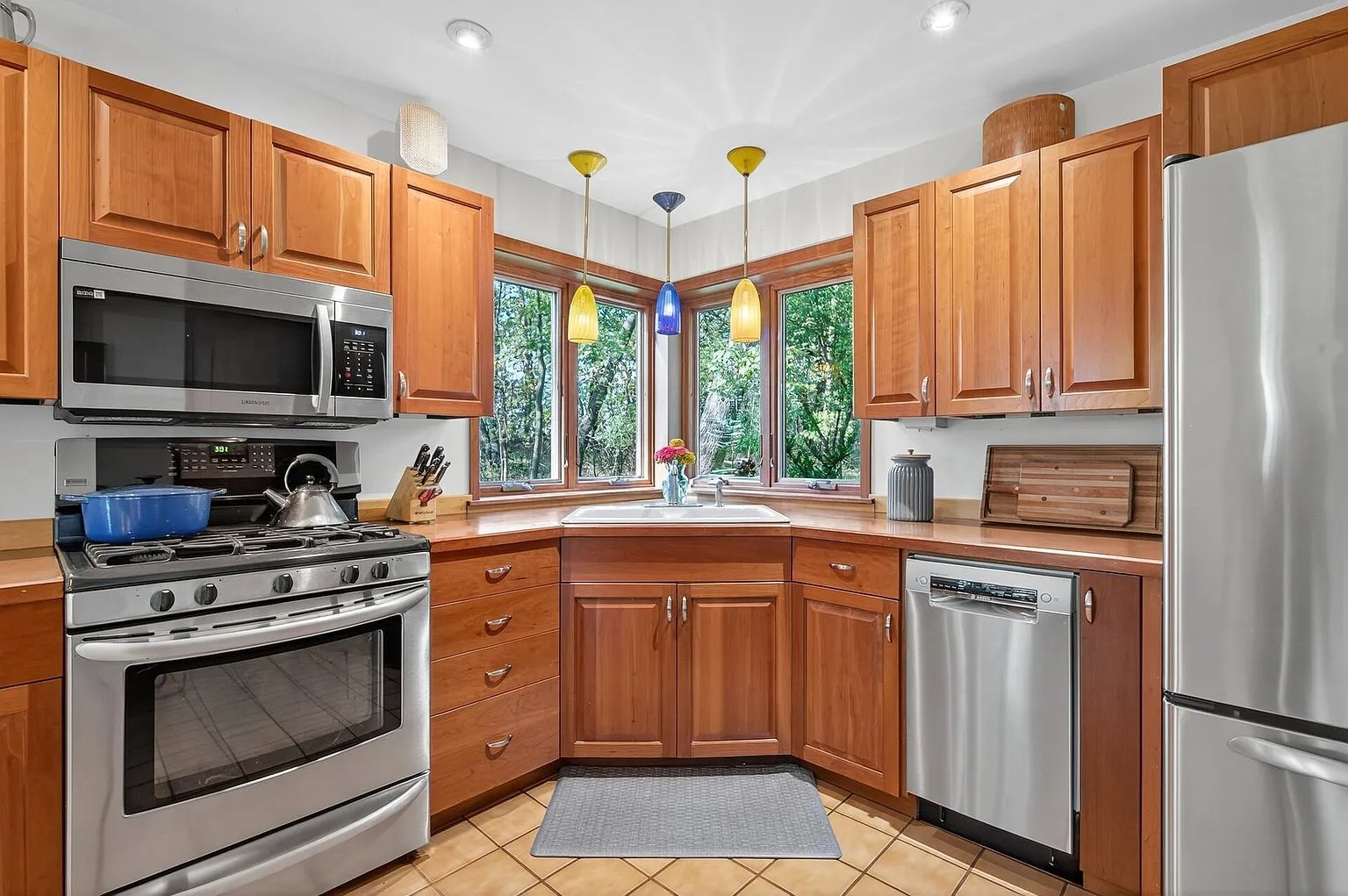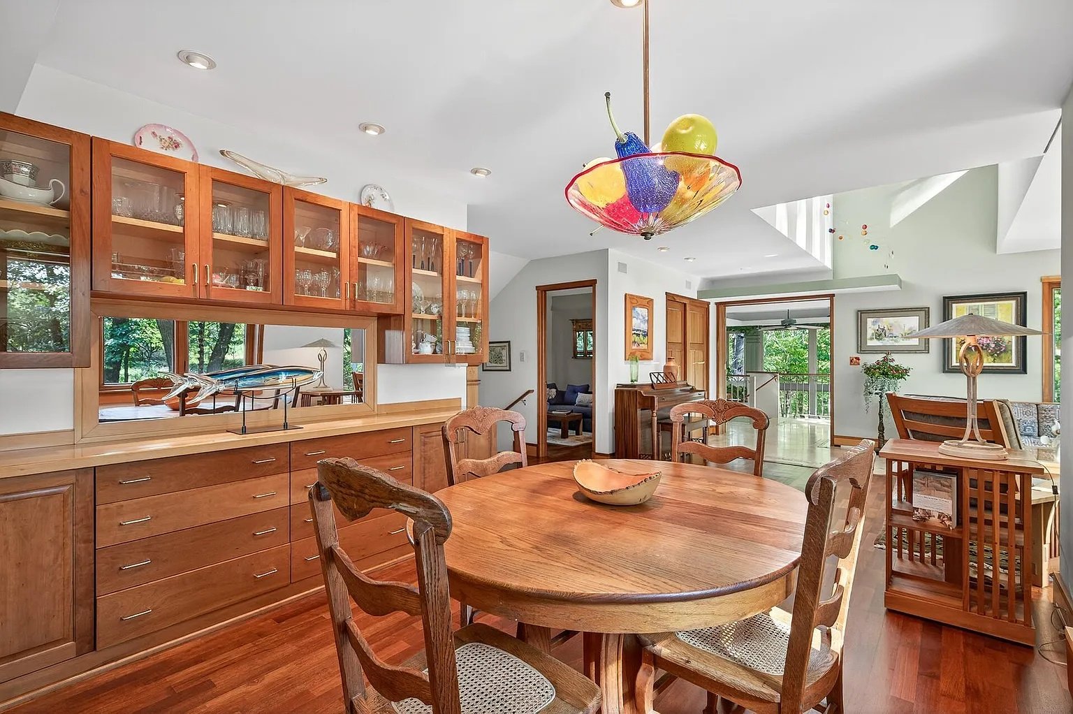 A recently upgraded dishwasher and microwave bring added convenience to the kitchen, while the high-quality Andersen windows installed in 2016 enhance both energy efficiency and everyday enjoyment of the wooded views. These updates blend seamlessly with the home’s original craftsmanship, ensuring that the property feels timeless yet thoughtfully maintained.
