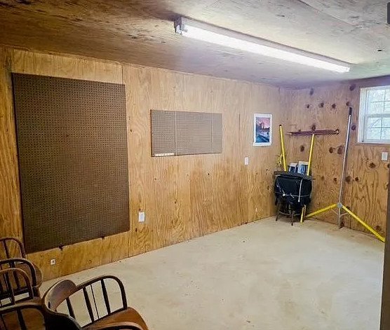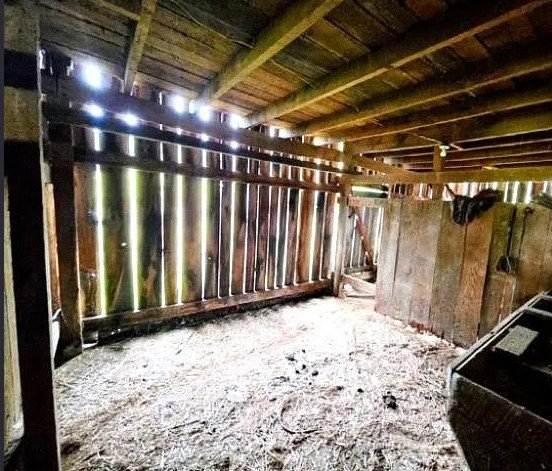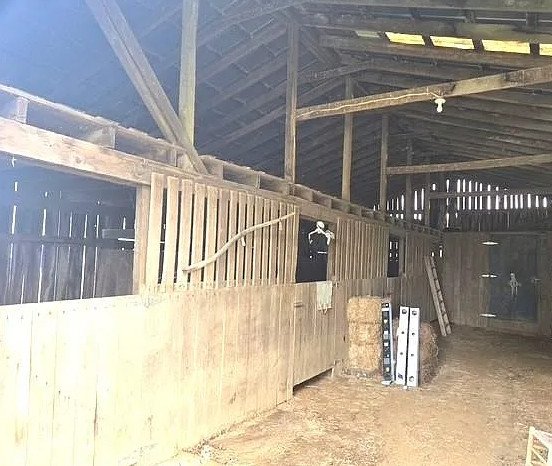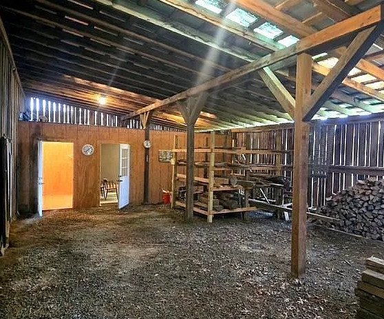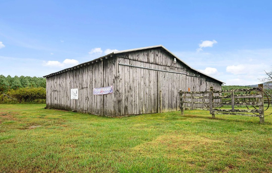 A substantial barn sits nearby—an ideal structure for horses, equipment, or storage. Equipped with stalls and a spacious interior, it is well-suited for anyone who dreams of an equestrian lifestyle or simply needs space for tools and hobbies. Its presence strengthens the property’s connection to the land, offering countless possibilities for use.