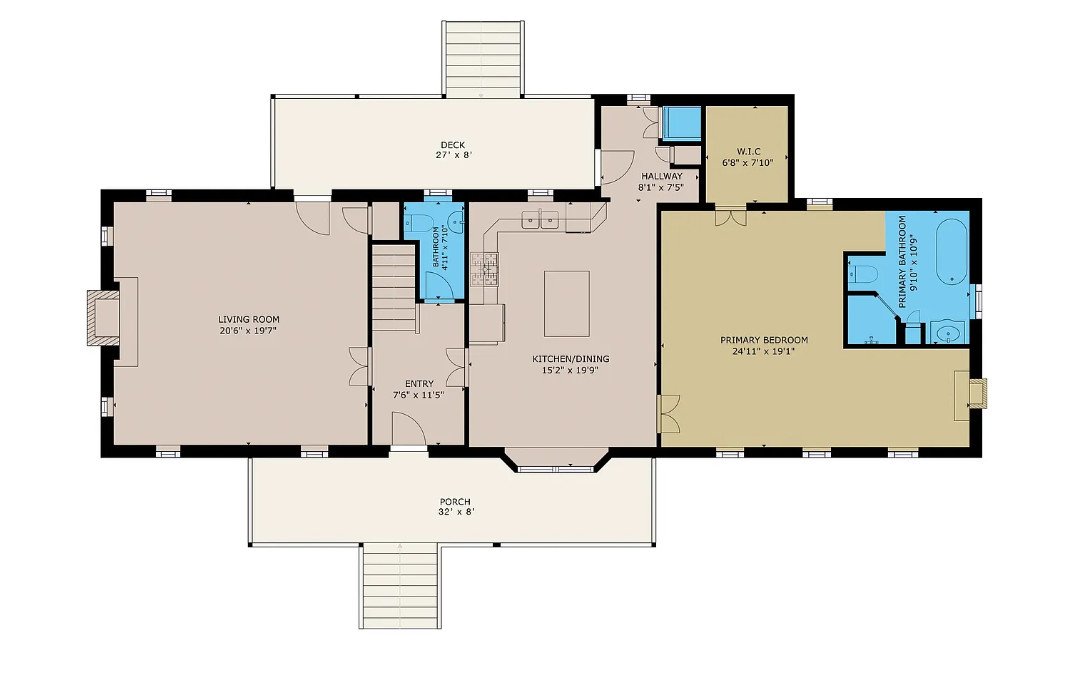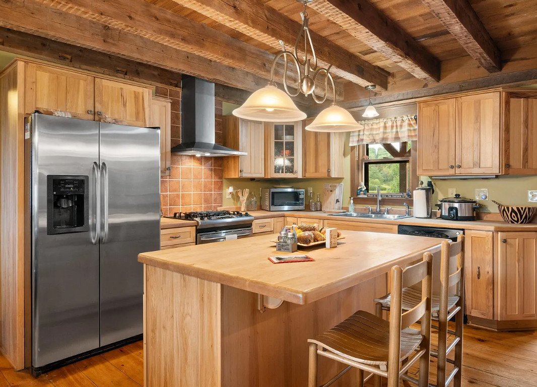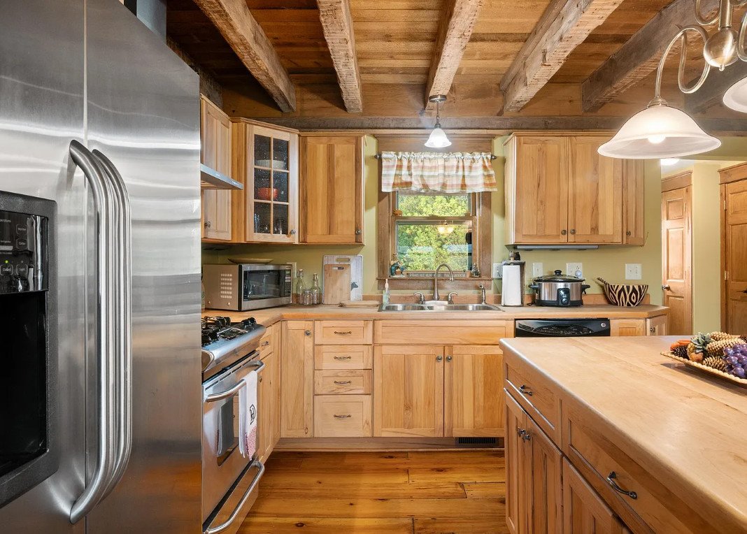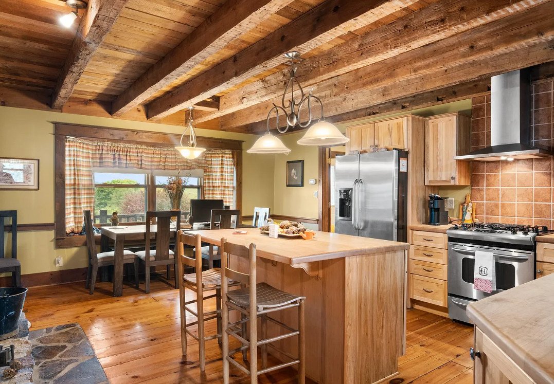 The kitchen forms the heart of the home, combining rustic style with modern updates that make everyday living effortless. Generous countertops, tasteful cabinetry, and functional workspace come together to create a room equally suited for preparing meals, gathering with friends, or enjoying the early morning light.