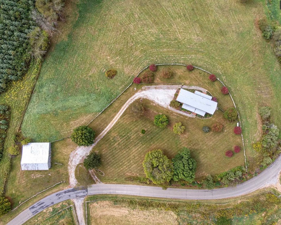Resting on 7.86 private acres, the property feels like its own hidden world, where mountain views stretch into the distance, a gentle stream winds nearby, and the sounds of nature replace the noise of everyday life.
