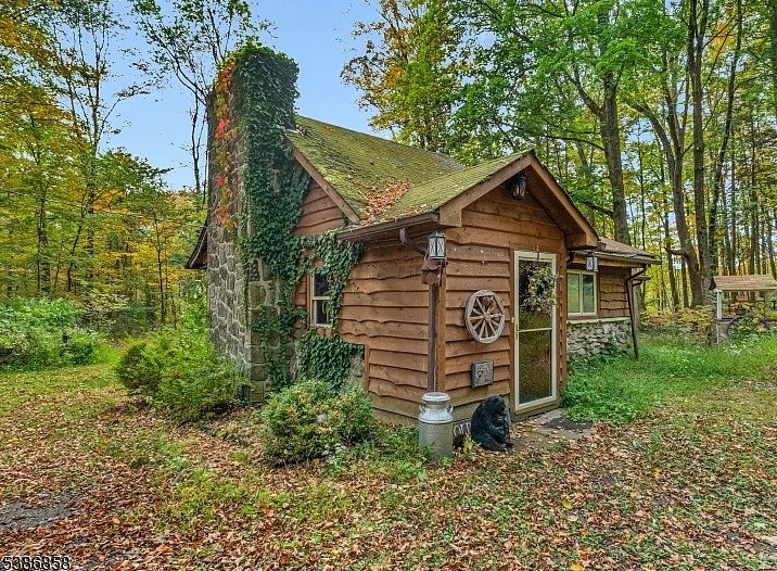 Hidden deep within the tranquil forests of Stockholm, New Jersey, lies a cottage so enchanting it feels lifted from the pages of a fairy tale. Set on 4.92 acres of pristine woodland—along with an additional 1.76-acre lot across the road—this c. 1943 retreat is the kind of place where imagination comes alive. The moment you catch sight of its tall stone chimney and rustic cedar siding, it becomes easy to picture woodland creatures, Hansel and Gretel, or even the Three Bears wandering out from behind the trees. This is not just a house; it is a world of its own, tucked away from everyday life and surrounded by storybook scenery.