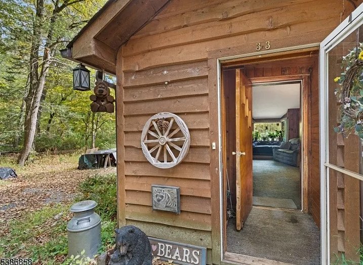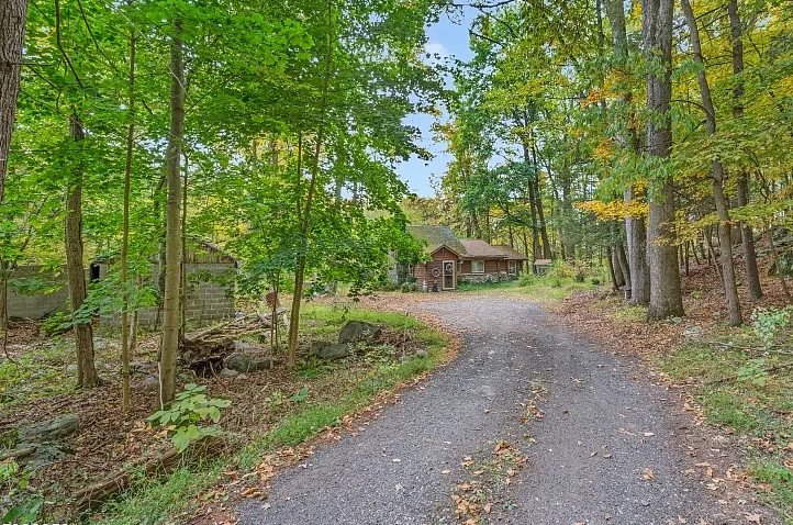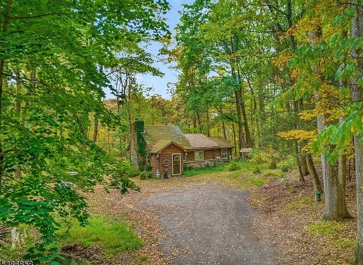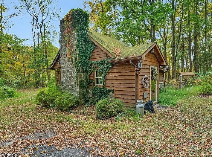 Hidden deep within the tranquil forests of Stockholm, New Jersey, lies a cottage so enchanting it feels lifted from the pages of a fairy tale. Set on 4.92 acres of pristine woodland—along with an additional 1.76-acre lot across the road—this c. 1943 retreat is the kind of place where imagination comes alive. The moment you catch sight of its tall stone chimney and rustic cedar siding, it becomes easy to picture woodland creatures, Hansel and Gretel, or even the Three Bears wandering out from behind the trees. This is not just a house; it is a world of its own, tucked away from everyday life and surrounded by storybook scenery.