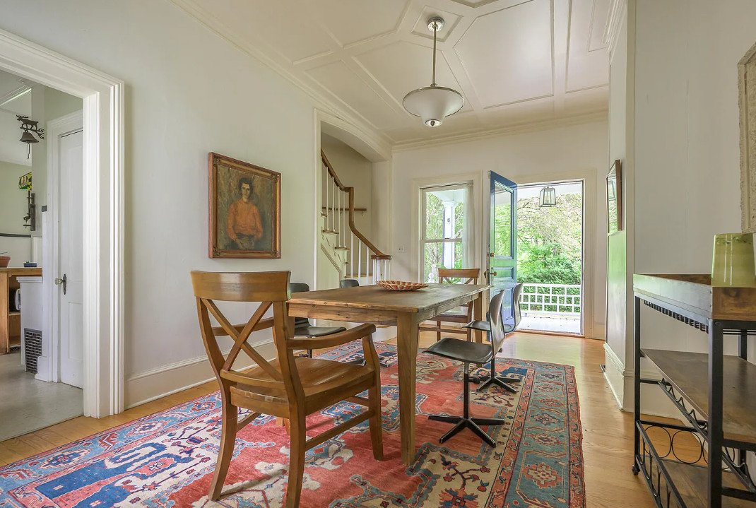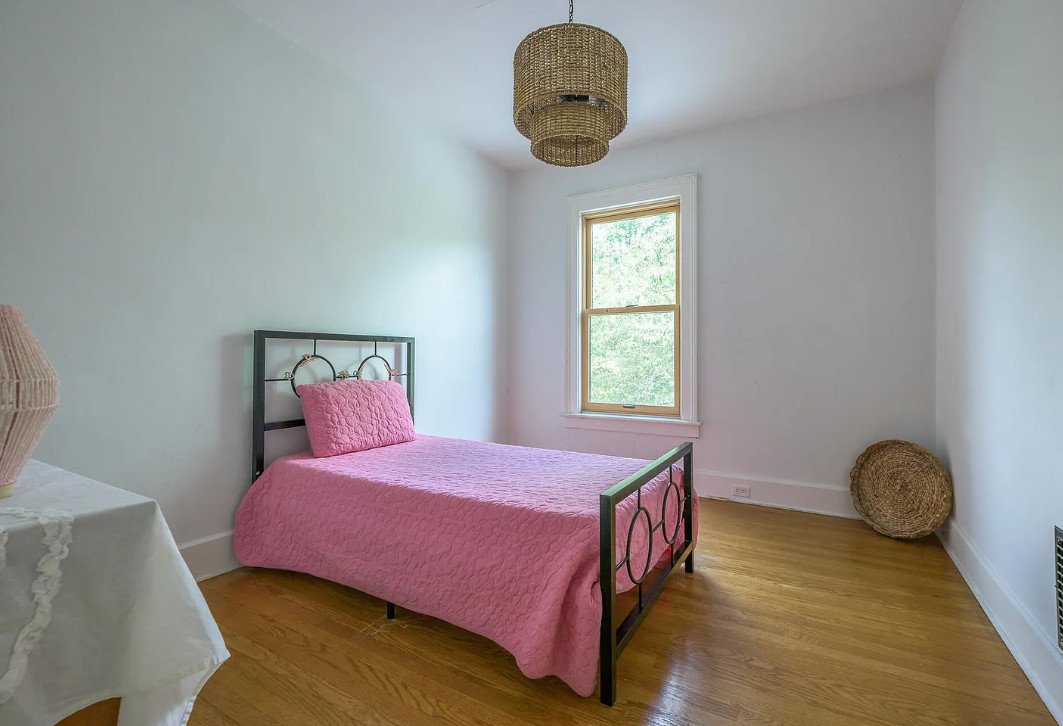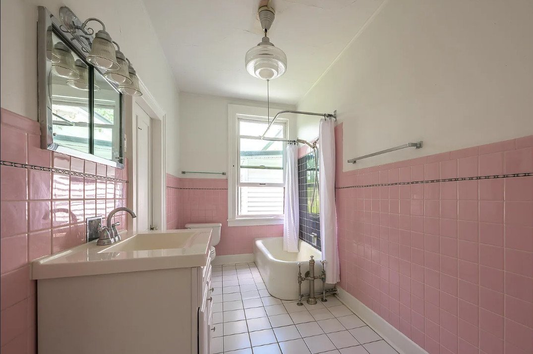 One of the standout elements is the vintage pink bathroom, an unexpected treasure for those who appreciate historic design. Soft colors, classic fixtures, and a cheerful retro charm make it a unique focal point in the home. While many older houses lose details like this through modern renovations, this one preserves a playful, authentic touch that adds personality and warmth.