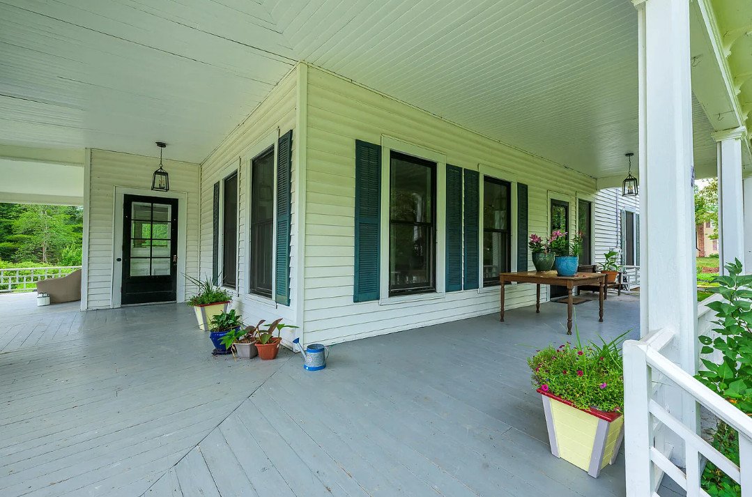 The first thing that catches the eye is the expansive wrap-around front porch—a classic feature that evokes slow mornings, quiet reading hours, and evenings spent watching the landscape shift with the seasons. It stretches gracefully around the home, creating a welcoming transition between indoors and outdoors. With tall ceilings, wood floors, and wide baseboards, the interior reflects the thoughtful workmanship of the era in which it was built. Despite its age, the home feels bright and open, with a natural flow between its many rooms.