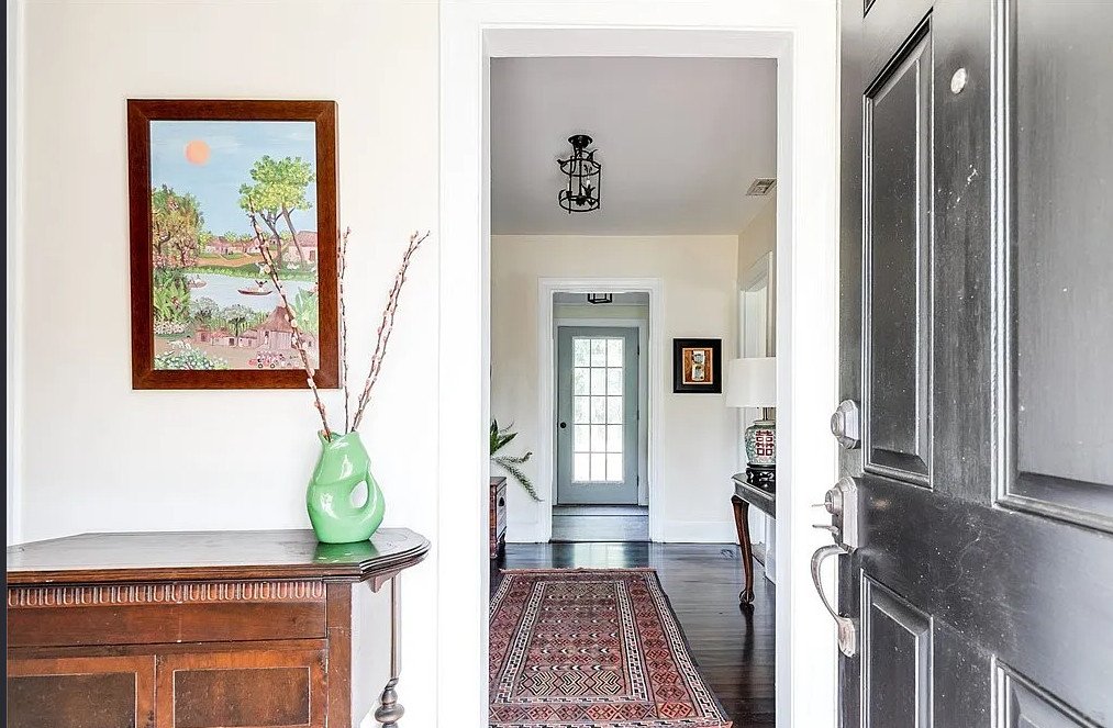 The exterior welcomes visitors with a small, covered front porch, inviting you to linger over a morning coffee or an evening breeze. The home’s harmonious symmetry and gracious architectural details reflect the care and craftsmanship typical of early 20th-century construction.