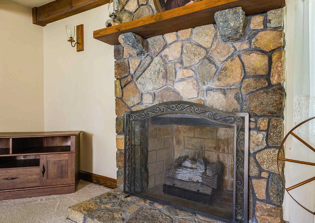 At the heart of the home is a stone fireplace, a feature that feels both substantial and inviting. Fireplaces like this were once essential for warmth, but they also served as gathering points where families spent time together. Today, it remains a focal point, offering a sense of continuity between past and present. The surrounding living space is generous and flexible, easily accommodating both quiet evenings and lively gatherings.