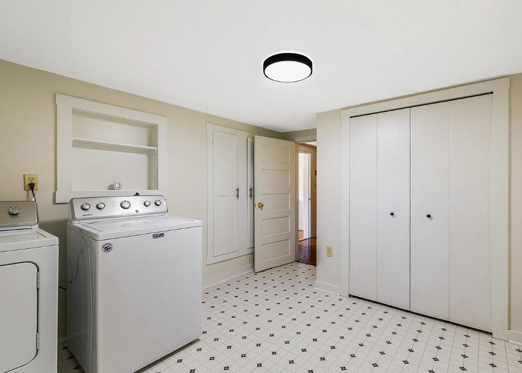 One particularly notable feature is the large laundry room, a space that exceeds expectations for a home of this era. Rather than being tucked away as an afterthought, it offers ample room for organization, storage, and additional uses, such as a utility area or even a secondary workspace. This unexpected generosity of space adds to the home’s livability and highlights how thoughtfully it has been maintained over time.