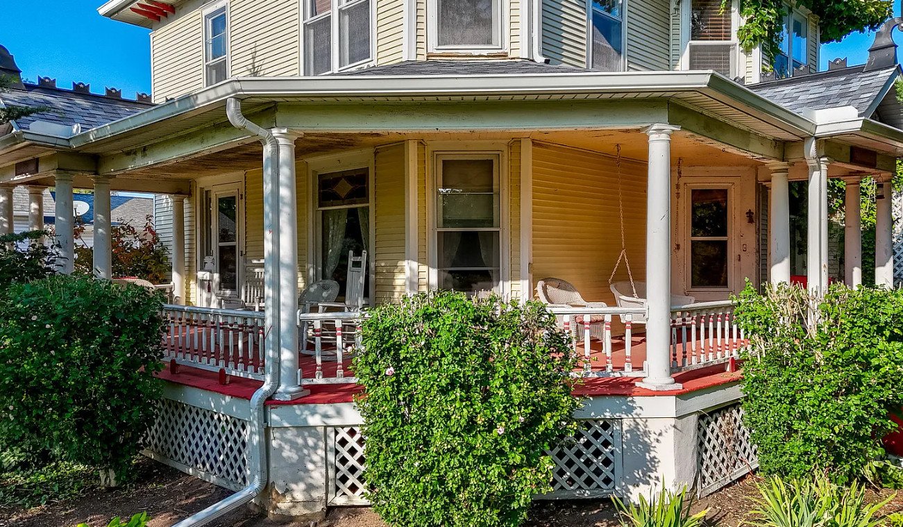 Approaching the home, the wrap-around front porch immediately commands attention. Porches like this were central to Victorian-era life, serving as outdoor living rooms where families gathered, neighbors exchanged stories, and evenings were spent enjoying the rhythm of the street.