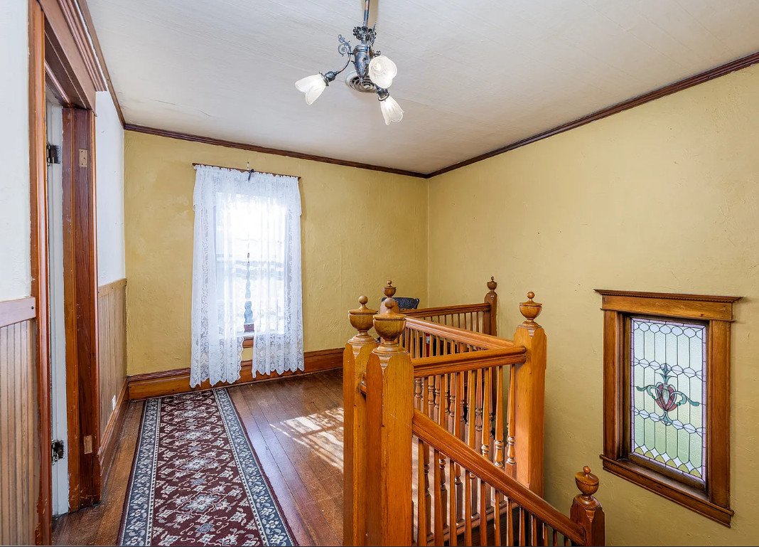 Beautiful staircase and stained glass! Circa 1912 in Illinois. $228,000