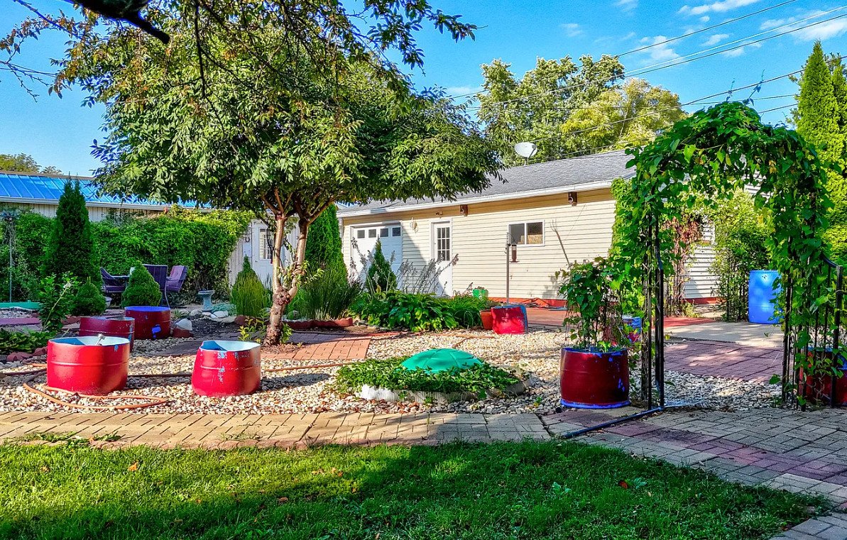 Beyond the main house, the property continues to impress. Mature landscaping surrounds the home, enhancing its setting and creating a sense of privacy and serenity. A koi pond adds a tranquil focal point, introducing movement, reflection, and sound to the outdoor environment. This feature transforms the yard into a peaceful retreat, offering a place for relaxation and contemplation.