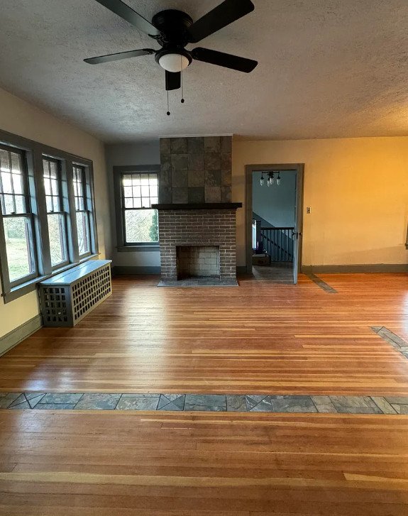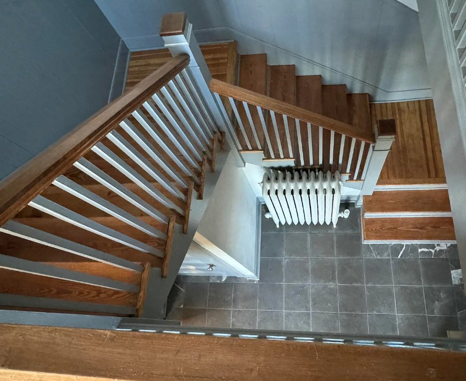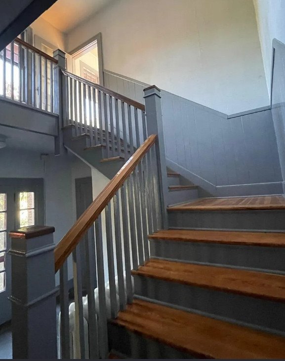 These floors, paired with original baseboards and architectural accents, speak to the home’s early twentieth-century origins. A handsome staircase serves as a visual centerpiece, connecting the levels while adding a sense of grace and flow to the interior layout.