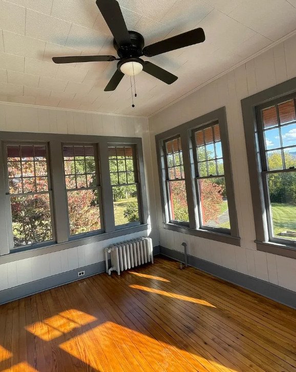 The home offers four bedrooms, each generously proportioned and filled with light. These rooms are flexible in use, easily accommodating family living, guests, or work-from-home needs. Two full bathrooms serve the house, including one featuring a classic claw foot tub—a detail that feels especially fitting for a home of this vintage and adds a touch of old-world charm.