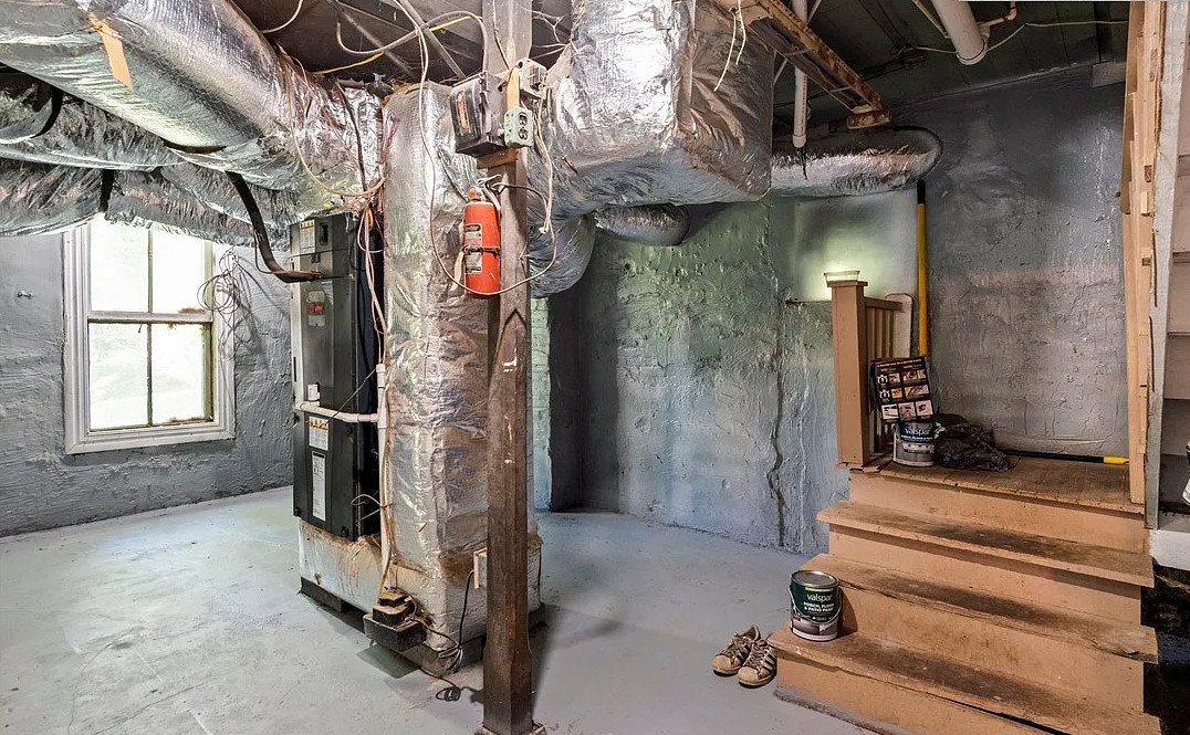 Below the main living spaces, the large basement offers valuable versatility. In homes of this period, basements were often robustly built, intended for storage, utilities, and practical household needs. Today, this space can easily adapt to modern requirements, serving as laundry space, workshop, hobby area, or additional storage, all while preserving the integrity of the main floors above.