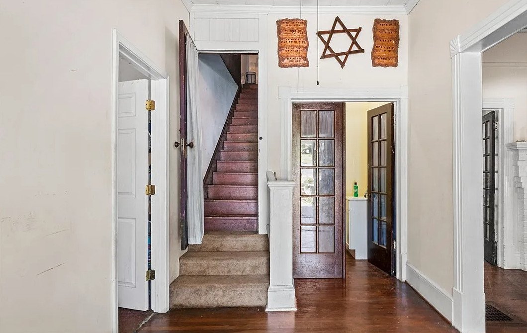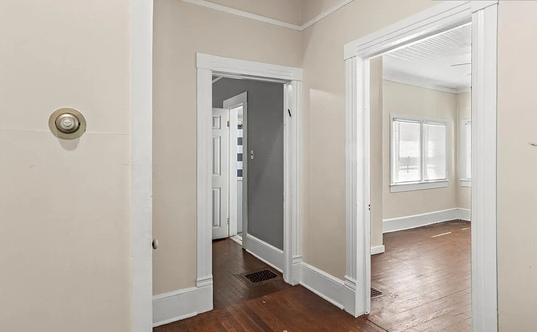 Inside, the home opens into spaces rich with original details that reflect the craftsmanship of its era. Original wood floors run throughout much of the house, adding warmth and continuity while showcasing the enduring quality of early construction.