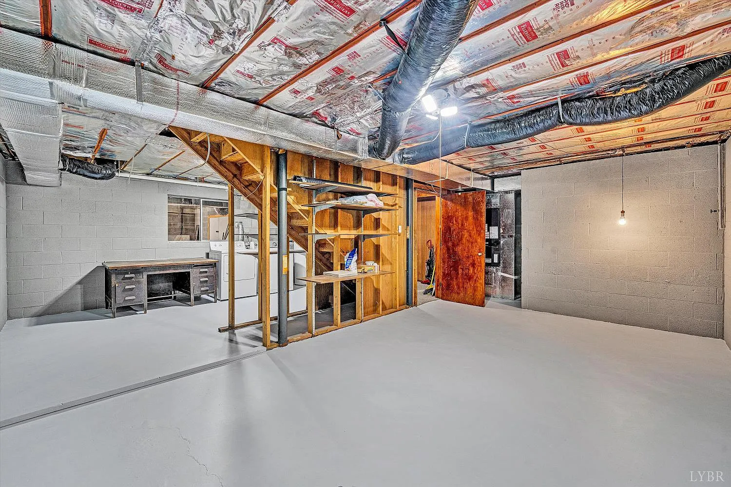 In addition to the finished areas, there is a large concrete-floored space beneath the addition. This area is ideal for storage, a workshop, or future expansion. The layout allows for the possibility of adding another bedroom, office, or hobby space, depending on needs. An additional laundry area in the basement adds further convenience and flexibility.