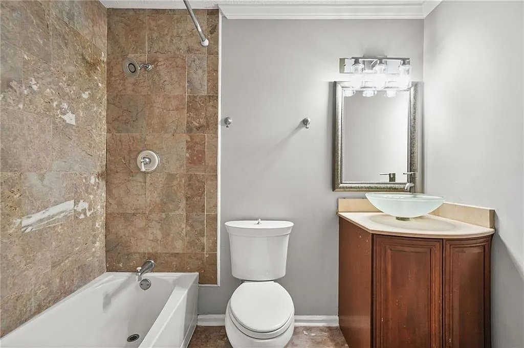 Additional features contribute to the home’s overall comfort and efficiency. Zoned forced-air heating and central air conditioning allow for consistent climate control, while ceiling fans enhance airflow throughout. Crown molding and a two-story entrance foyer add subtle architectural interest, elevating the interior aesthetic. Laundry facilities are conveniently located in the basement, keeping everyday tasks organized and out of sight.