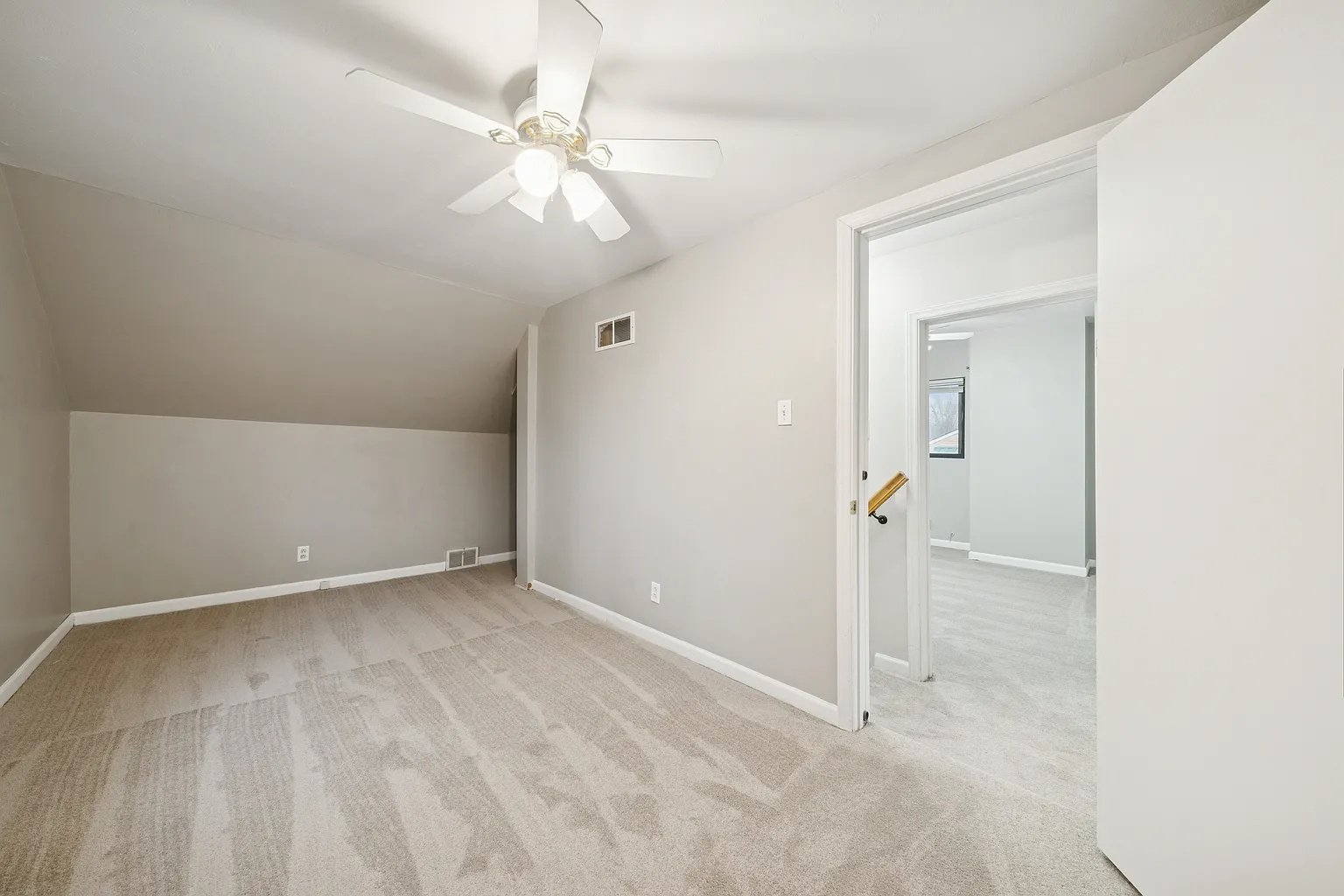 Upstairs, the second floor hosts two additional bedrooms along with a half bathroom. These rooms provide privacy and separation from the main living areas, making them well-suited for sleeping quarters, creative spaces, or work-from-home needs. The layout maintains the home’s traditional character while allowing each room to feel distinct and purposeful.