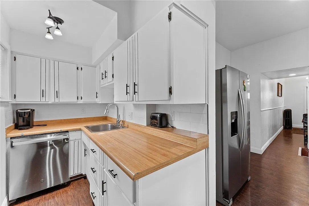 The kitchen, also located on the main floor, is efficiently designed to support daily routines. With included appliances such as a refrigerator, stove, dishwasher, washer, and dryer, the space is well-equipped for modern living while maintaining a layout that remains true to the home’s original character. The flow between the kitchen, dining, and living areas makes the main level equally suitable for entertaining or quiet evenings at home.