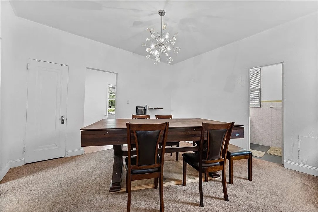 Upon entering, the main level unfolds with a classic and functional arrangement. A defined entry foyer provides a graceful introduction to the home, leading into a formal dining room that is well-suited for gatherings, shared meals, and special occasions. Nearby, the spacious living room offers a comfortable environment for everyday life, combining warmth and openness. Window treatments and multi-pane windows enhance both privacy and natural light, while a mix of ceramic tile and carpeted flooring adds visual interest and practicality throughout the level.