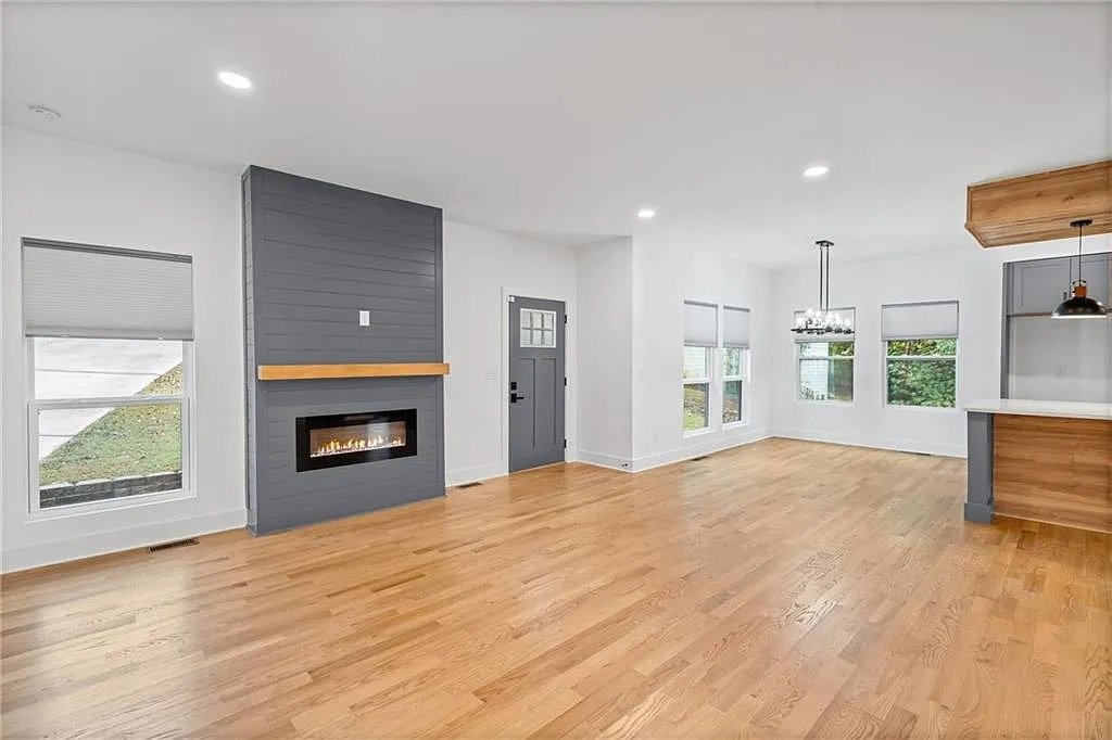 From the moment you arrive, the brick-front exterior and clean architectural lines create a strong first impression. A welcoming front porch sets the tone, offering a perfect spot to enjoy a quiet morning or greet guests. Inside, the home opens into a bright and expansive main level designed with entertaining and connection in mind. Hardwood flooring flows through the principal living areas, while large, insulated windows allow natural light to fill the space, enhancing the home’s airy and inviting atmosphere.