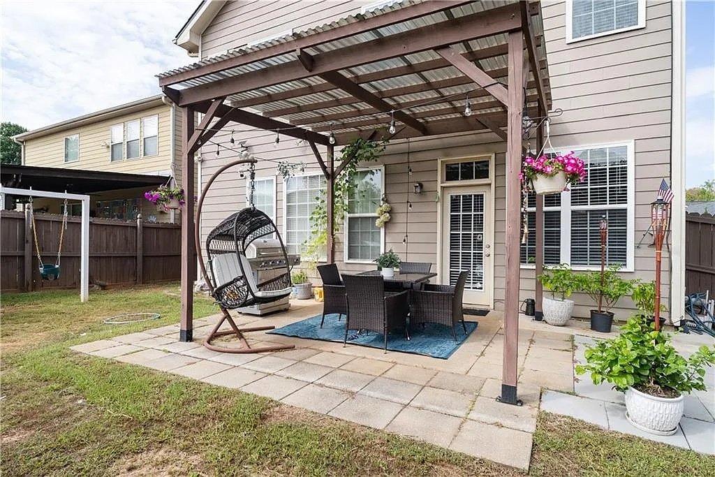 Just beyond the main living areas, a private fenced yard creates a peaceful outdoor extension of the home. Nestled against the cul-de-sac curve with no through traffic, this lot offers a sense of calm and safety that is ideal for relaxation, play, or pets. The patio invites grilling, dining, or simply pausing with a warm drink to enjoy the fresh air. With thoughtful landscaping and added privacy, outdoor living becomes an everyday luxury.