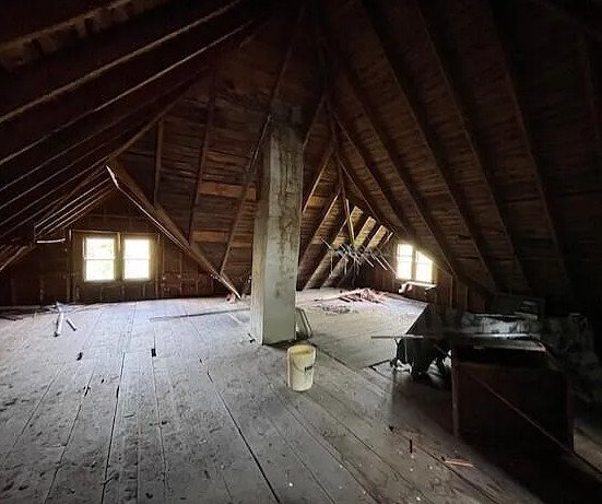 A small sewing room connects the second floor to the attic. The placement tells a story: in the 19th century, attics doubled as storage and workspace, and sewing rooms sat where daylight was best. Today, the room could serve as a studio, small office, or walk-in closet, and the attic beyond hints at expansion potential.