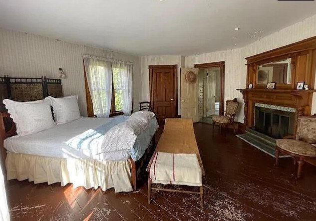 Upstairs, the home’s history spreads through three large bedrooms, each with generous proportions that older homes often deliver. One of the bedrooms includes its own fireplace, an uncommon and delightful luxury—perfect for a reading nook, writing space, or simply an especially cozy retreat.