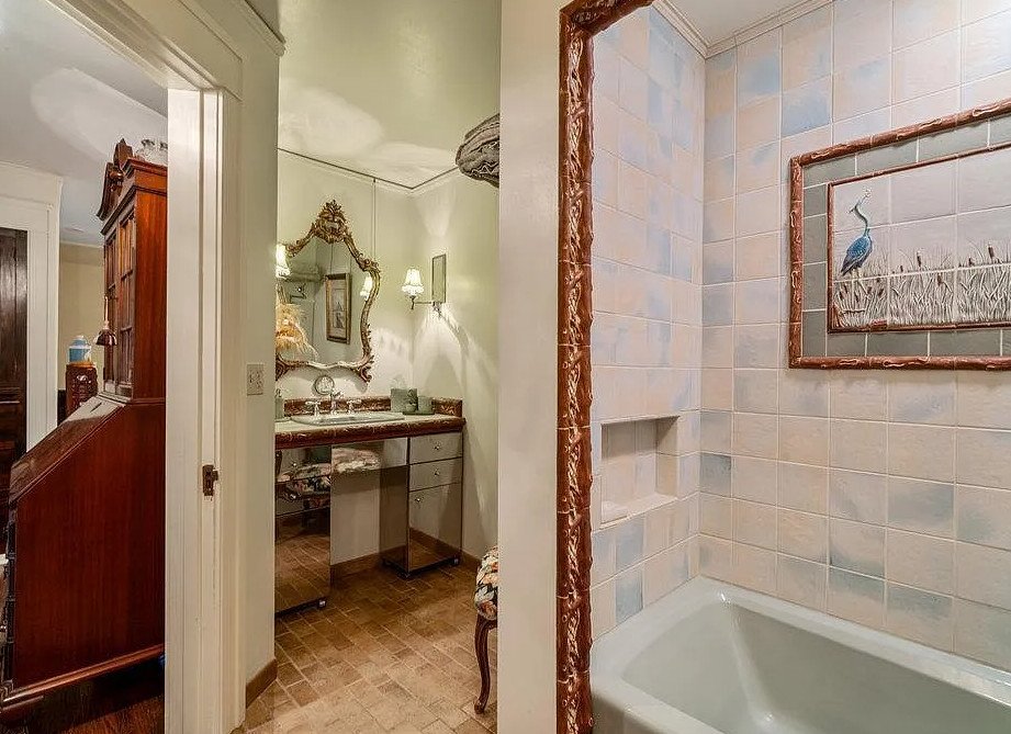 Upstairs, the period charm continues in the private living quarters. The residence features four bedrooms and four bathrooms, including two owner’s suites—each with its own private bath. These suites offer a blend of seclusion and elegance, making them ideal for long-term comfort or accommodating guests with refined hospitality. Throughout the upper level, original details endure, from millwork and trim to carefully preserved proportions that maintain the home’s classic balance.