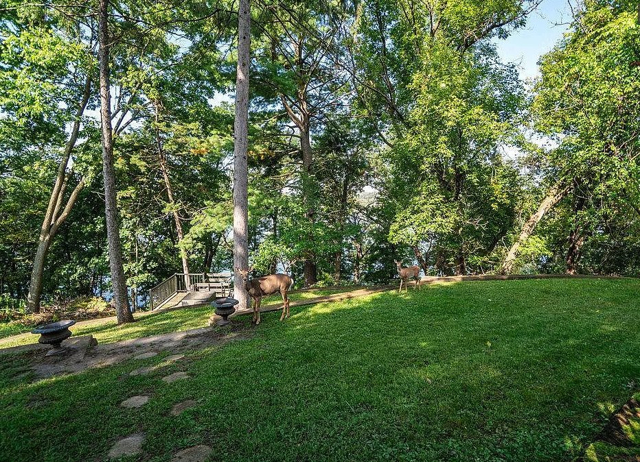 Set on approximately three-quarters of an acre in Menomonie’s coveted Lakeview neighborhood, the property enjoys roughly 126 feet of lake frontage, offering sweeping water views and a direct connection to one of Wisconsin’s most picturesque natural settings. One of its most captivating features is a private tramway that glides down the hillside to the lakefront—a rare and enchanting amenity that enhances both convenience and character. This charming mechanical detail evokes the romance of historic resorts and grand estates, where access to the water was designed to be both functional and memorable.