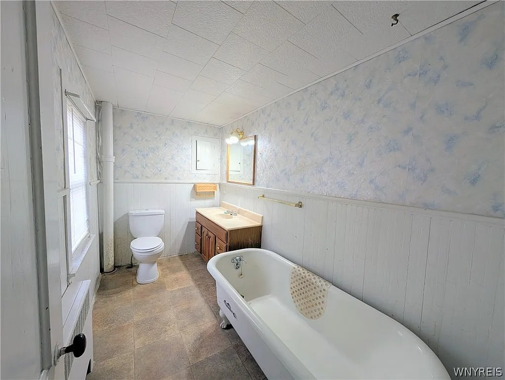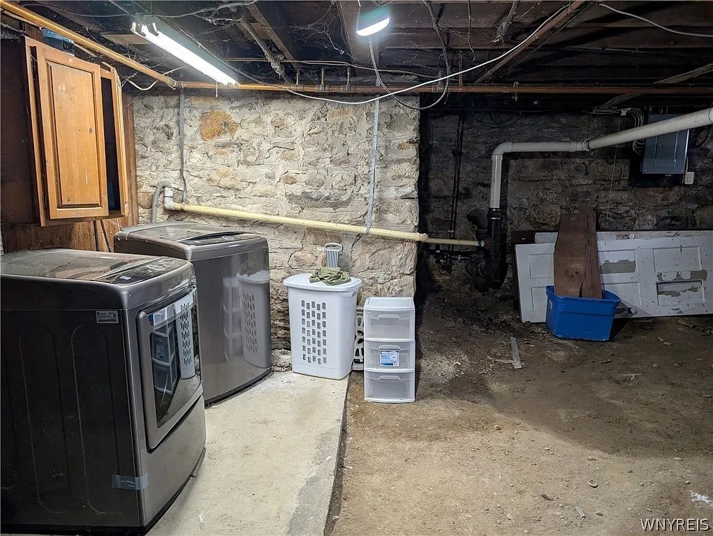 Practical elements of the home have not been overlooked. Heating is provided by a gas hot water system, and the basement—accessible via a walk-up entry—offers additional storage or utility space. While the basement features a partial dirt floor, it reflects the home’s age and original construction methods, adding to its authenticity.